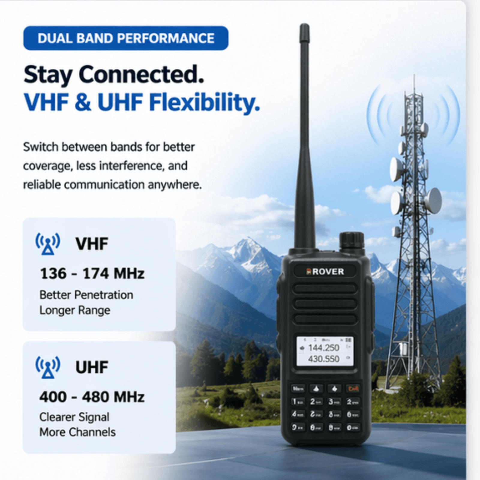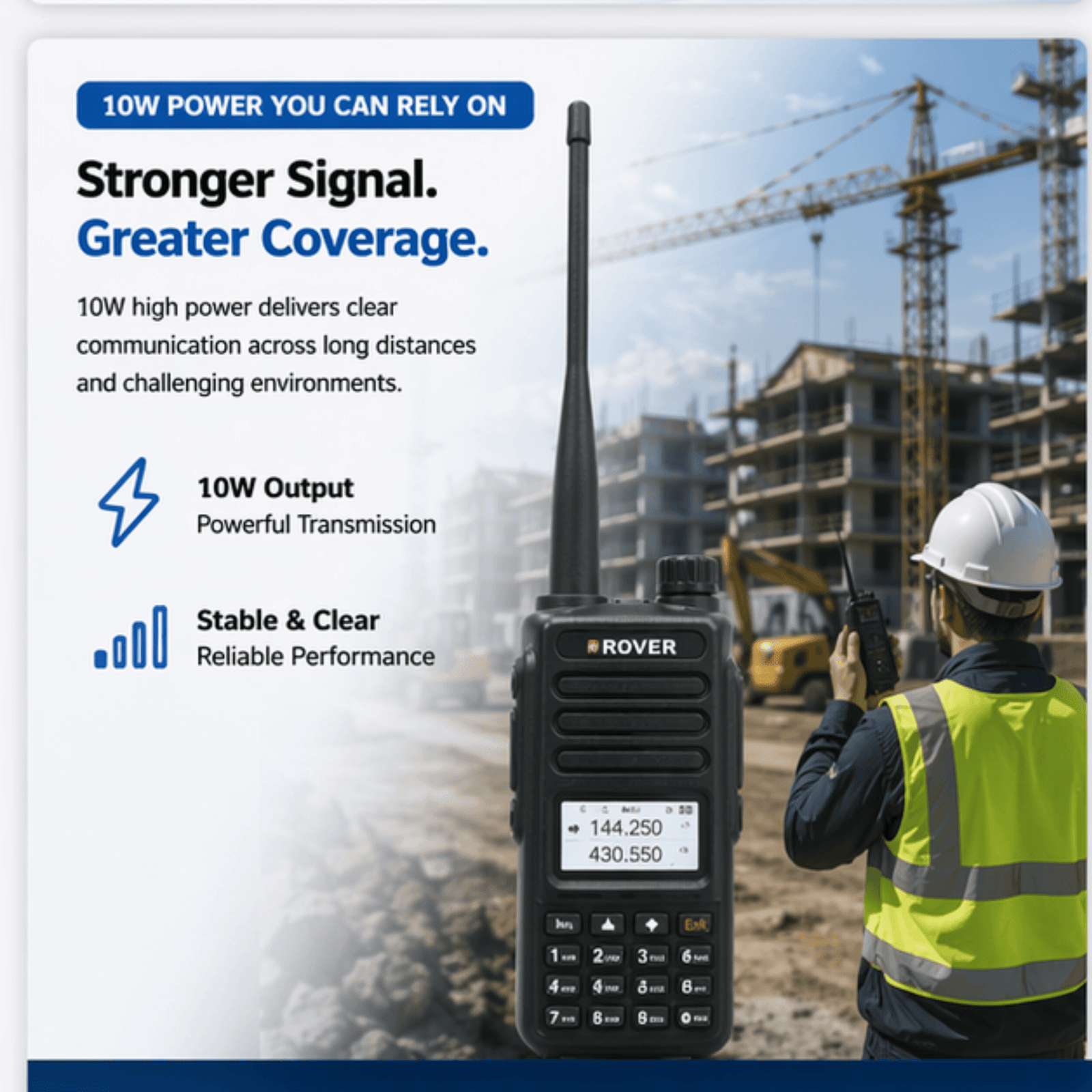 The ROVER RO-30UV Dual Band Two-Way Radio is a high-performance communication device engineered for professional environments requiring reliable, long-range connectivity. Designed for security teams, industrial operations, and field personnel, it combines powerful 10W transmission with dual-band UHF/VHF capability. With 200 channels, robust battery performance, and advanced signaling features, this radio ensures seamless communication across complex and large-scale operations.